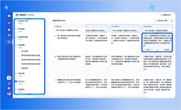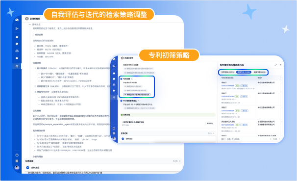 · 查全率高达77%,远高于主流通用AI大模型· 内置贝叶斯算法,检索策略可实时自我评估与迭代优化,精准平衡查全率与查准率· 新增业务逻辑初筛,基于IPC、速读摘要/权要,快速排除干扰专利