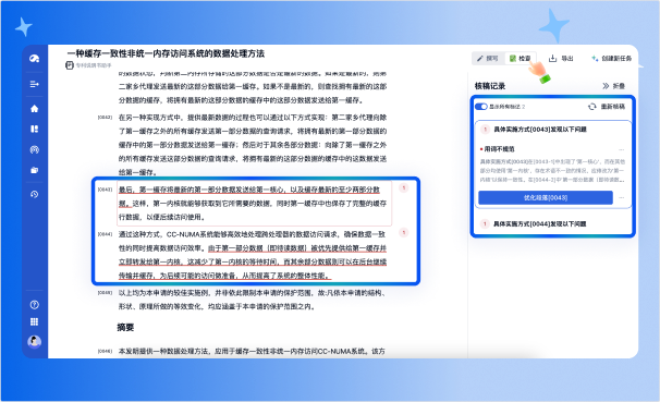Agent撰写完成的专利说明书,将进行智能核稿,识别用词一致性等问题,更好地提高专利撰写质量,从而更快推进专利局的审查进程,快速取得有质量保障的专利授权。