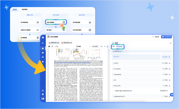 支持快速从用户文档中提取「物质和属性」,直接回答相关问题(全文智能提问/片段指定提问),大幅减少人工阅读时间